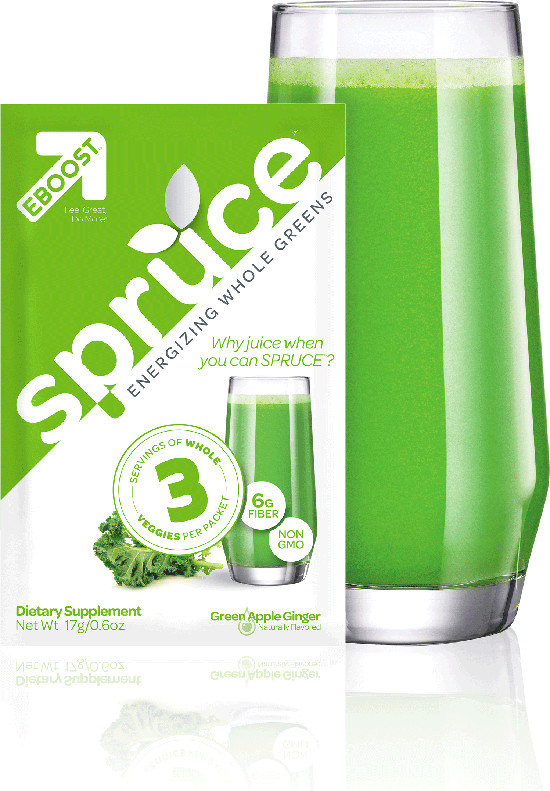 GREEN IS GOOD. Getting 3 servings of veggies daily has never been so easy, tasted so good, and felt so energizing.* That’s SPRUCE™, a next-generation alternative to juicing or buying ready-to-drink greens juices . Mix it with water, milk, juice, or a protein shake or smoothie. In a few moments, the green goodness will lift you up.* SPRUCE™ tempts your taste buds with a refreshingly delicious green-apple flavor chased by a subtle ginger kick. + 3 true servings of vegetables per packet + 5 key green vegetables in doses that matter: Spinach, Kale, Broccoli, Asparagus, Cabbage + Freeze & Air-dried whole greens + A boost from the Coffee Cherry + From farm to packet, quality assured + Allergen & Gluten Free + Non-GMO, No artificial flavors, colors or sweeteners + No added sugars + Vegan .